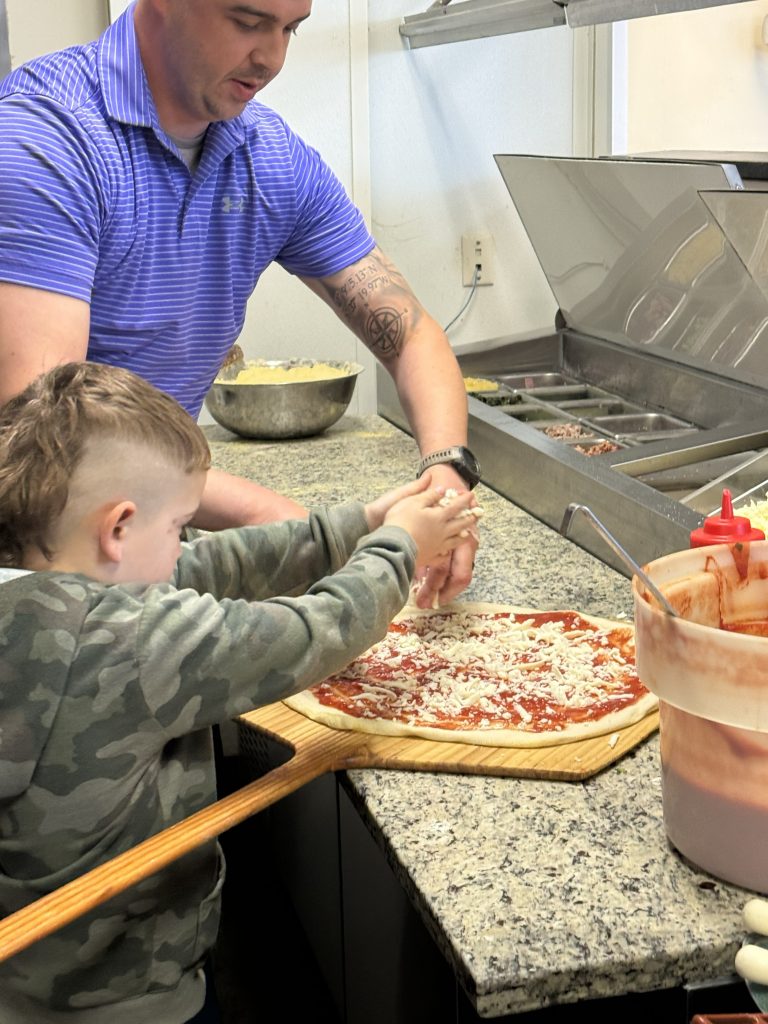 Nick didn’t just stop in to shake hands — he stepped behind the counter, tossed pizza dough, and helped make pies while talking with the people who came out. It wasn’t staged or scripted. It was real, unscripted interaction with the community he’s committed to serving.